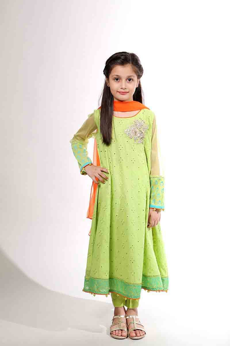 Rich your little girl’s wardrobe with these party dresses and let her become the trendsetter for other baby girls. Pakistani children clothes by designers are rather expensive same as if they are made for the young girls and women. Maria B never compromises with fabric quality, embroidery work, attractive colors and of course then demands the high prices even for kids clothing.
